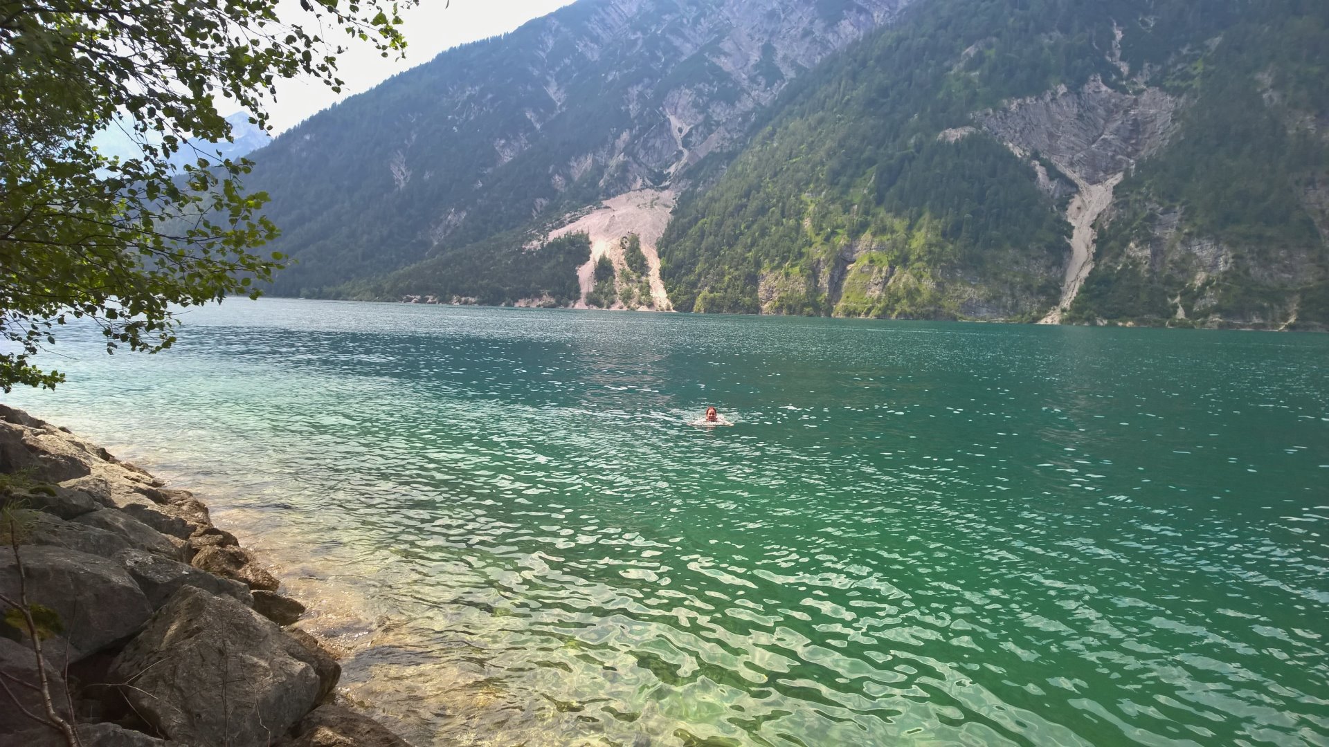 Weiterfahrt und kurze Schwimmpause im Achensee - ca. 20 Grad - wohltuend und erfrischend