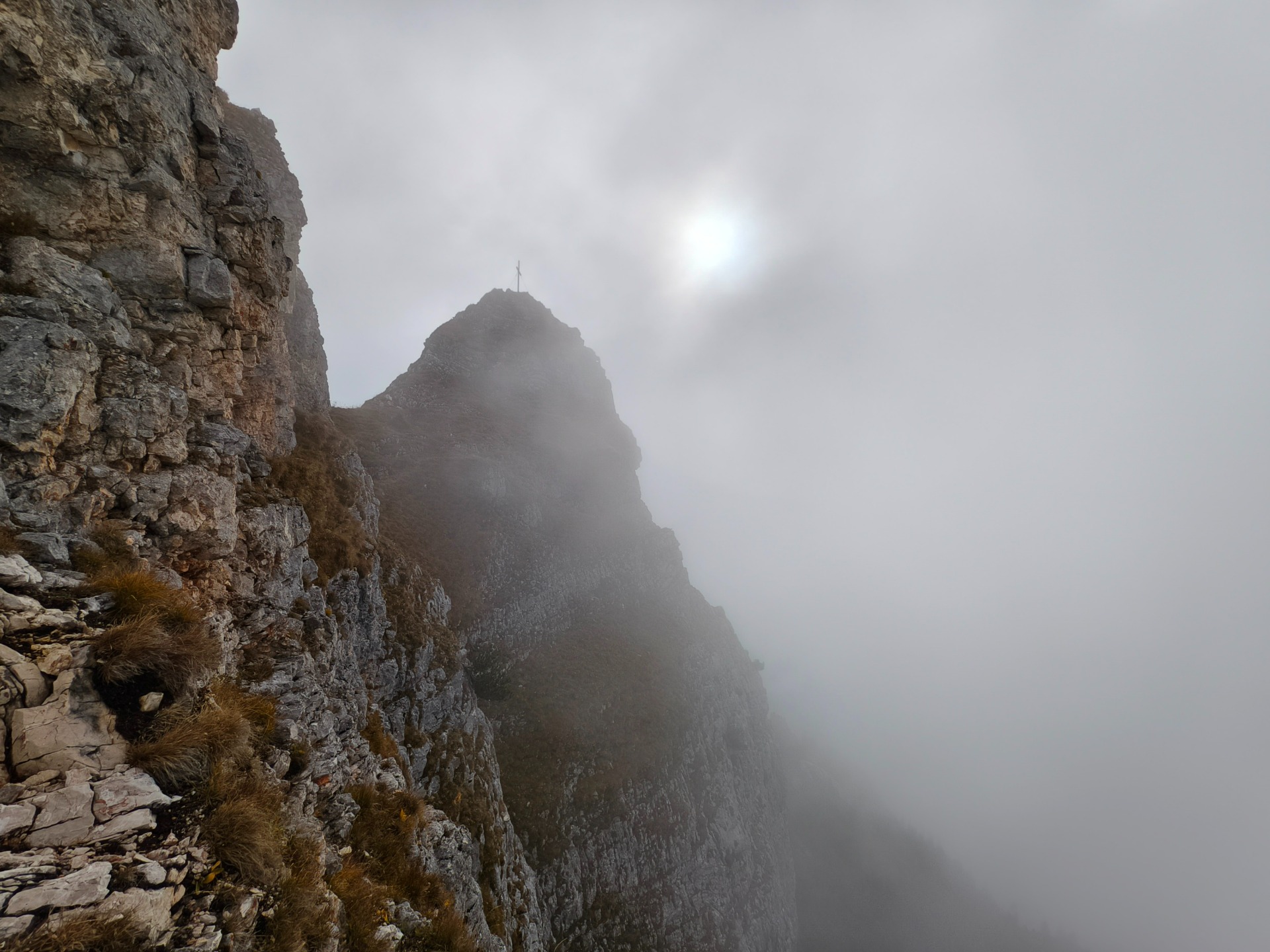 reizvolle Nebeltour auf einen kühnen Felszahn